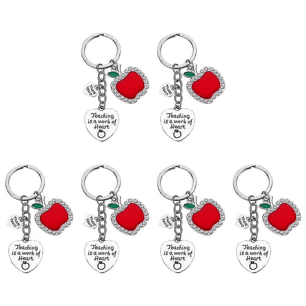 Stainless Key Chain Teacher Keyring Apple Shape 8x5.5cm Chic Style Decorative 6Pcs