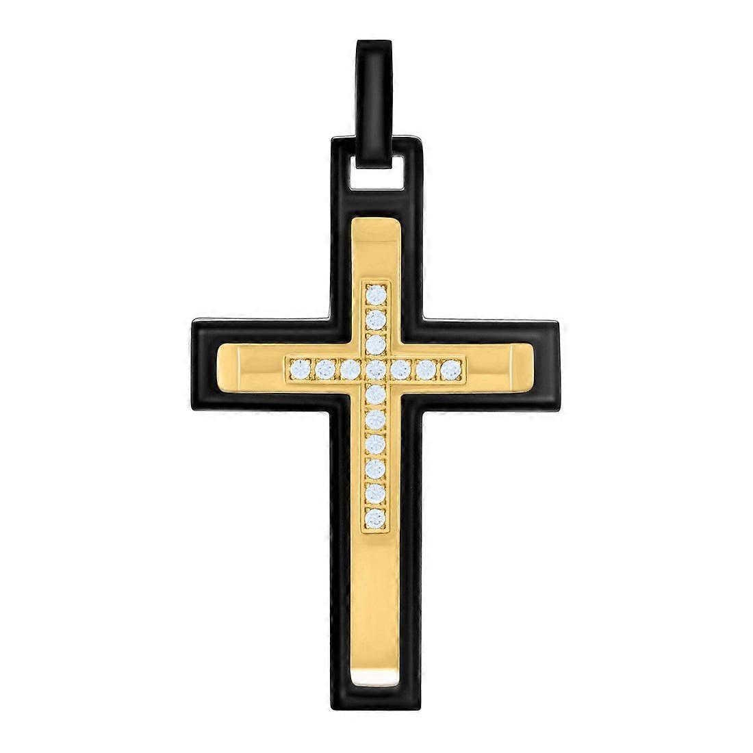Stainless Steel Yellow Black tone Mens Cubic Zirconia Cross Religious Charm Pendant Necklace for Men
