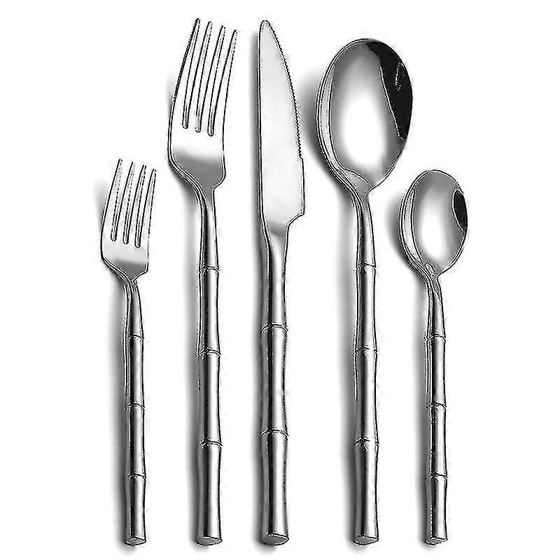 Stainless Steel Cutlery, Creative Cylindrical Bamboo Handle, 304 Thick Cutlery (5-piece Set)