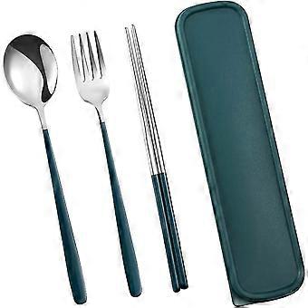 ステンレススチールカトラリーセット再利用可能なスプーン箸フォークポータブルフラットウェア用品韓国風食器フォークスプーン箸カンピ用ケース付き
