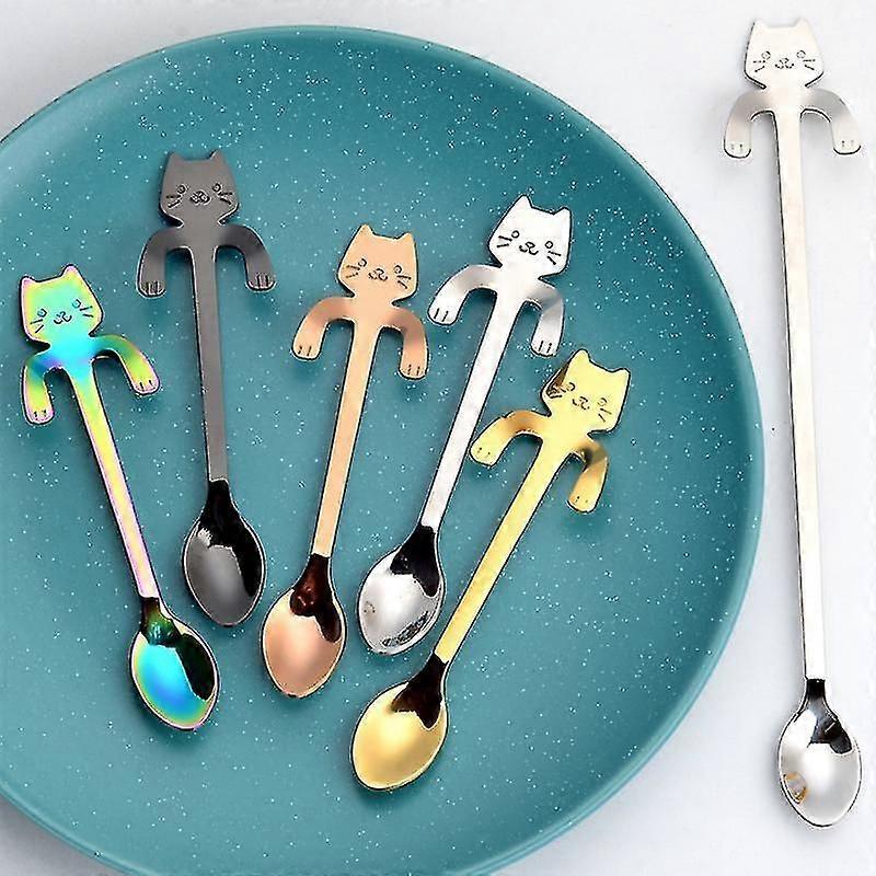 Stainless Steel Coffee Spoon Lovely Cute Cat Shape Teaspoon Dessert Snack Scoop Ice Cream Mini Spoons Tableware Kitchen Tools