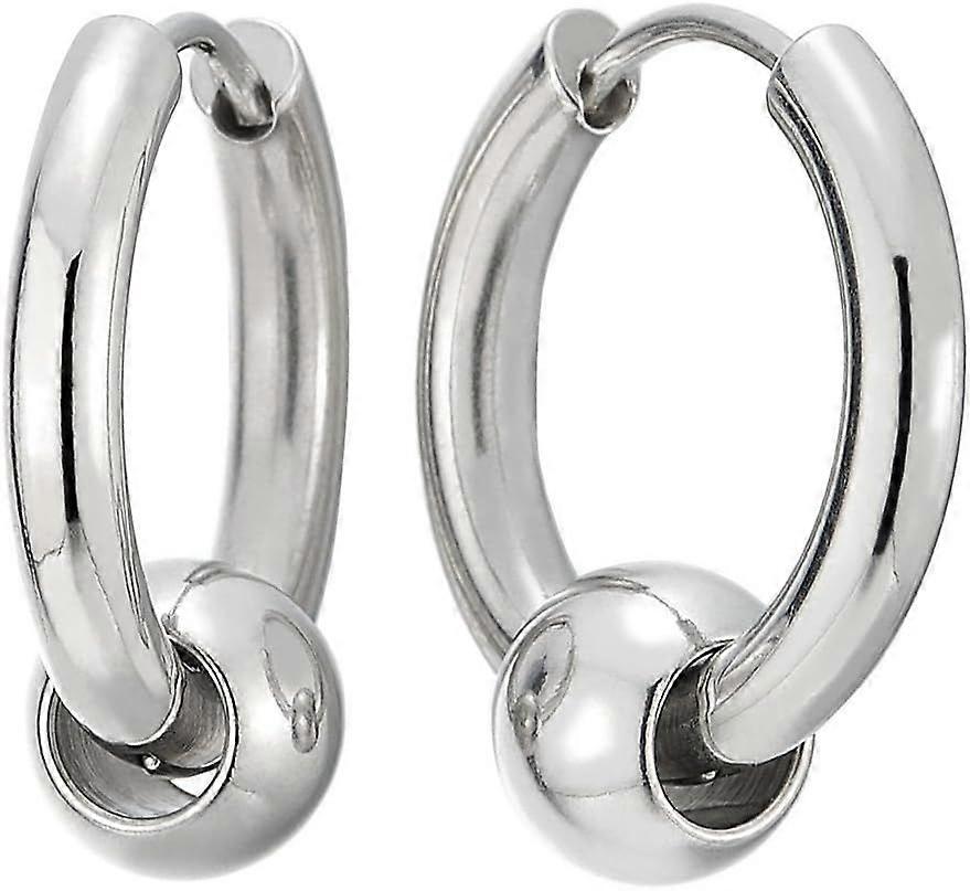 Stainless Steel Circle Beads Huggie Hinged Hoop Earrings for Men Women, 2pc