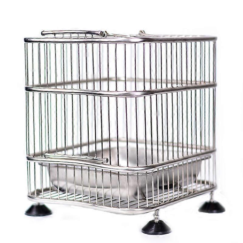Product Details1. Easy to clean, this pet cage bird cage is comfortable and easy to clean2. Thickened steel wire, strong and not easy to rust, unique opening and detachable cage hook, dual-purpose design for portable hanging, lightweight. Thick steel wire design makes the bird cage more stable and sturdy.3. 2mm steel wire is used to make the birdcage more solid and stable. It adopts manual interlacing technology, no solder joints, exquisite and practical stainless steel cups and pole accessories, making the life of love birds more enjoyable.4. Stable round four-legged round four-legged design, which not only ensures the stability of the cage but also does not hurt the floor.5. The design is simple and generous, with pure colors, suitable for the living environment of birds, and a little bit of self-arrangement will make it more beautiful.Specification:Material: Stainless steelDimensions: 25x19x24 cm/9.8x7.4x9.4 inches;Cage door: 7x8cm/2.7x3.1in; thread distance: 2cm/0.7in;Hook: 20cm/7.8in.packing list:Bath cage*1+wooden pole*1+2 stainless steel cup