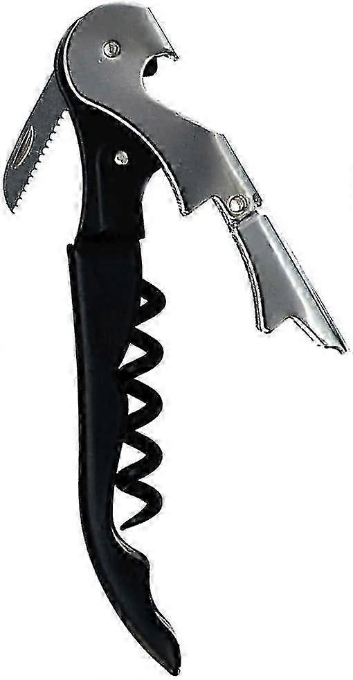 3IN1 PROFESSIONAL WAITER'S CORKSCREW: Get a wine multi tool combining a Bottle Opener, a Wine Corkscrew and a Foil Cutter in a wine accessory for home, bar or restaurant use.Made from high quality stainless steel.It is compact and easy to store in a drawer, picnic basket, or your pocketSmall Serrated blade for cutting foil.Friendly on your hands: Finished with a soft grip coating, so you can uncork wine, crack open beers and soft drinks in comfort