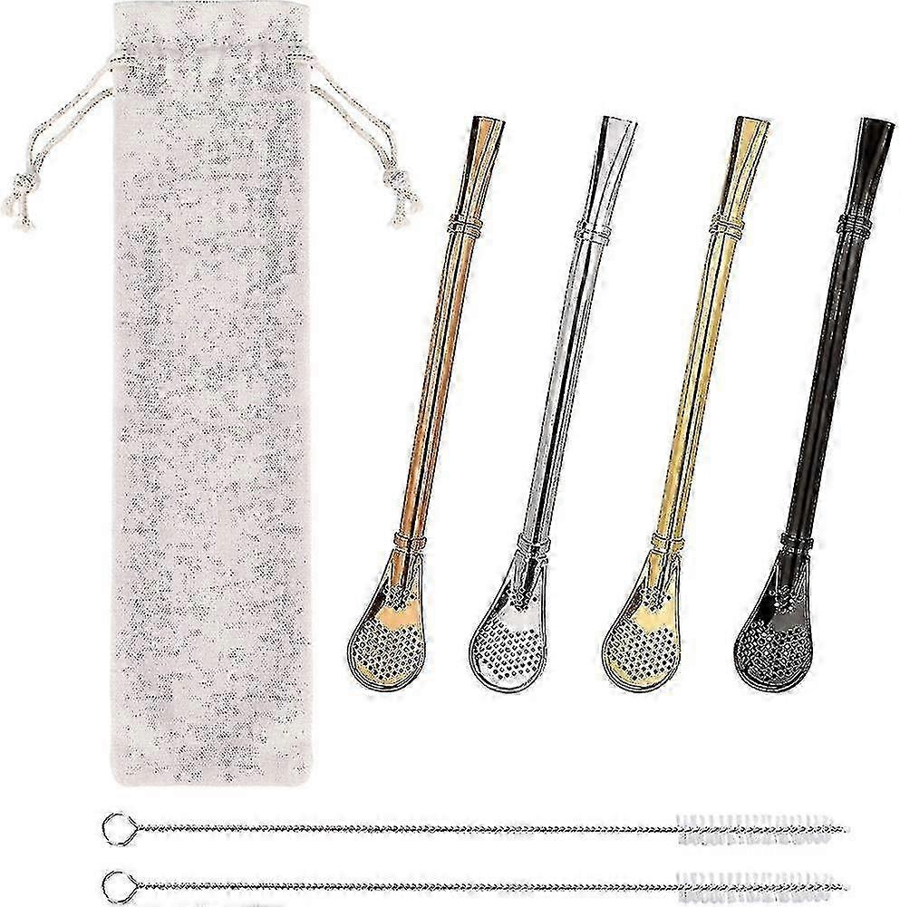 Stainless Steel Filter Straw Spoon Reusable Bombilla Straws Spoon Straws With 2