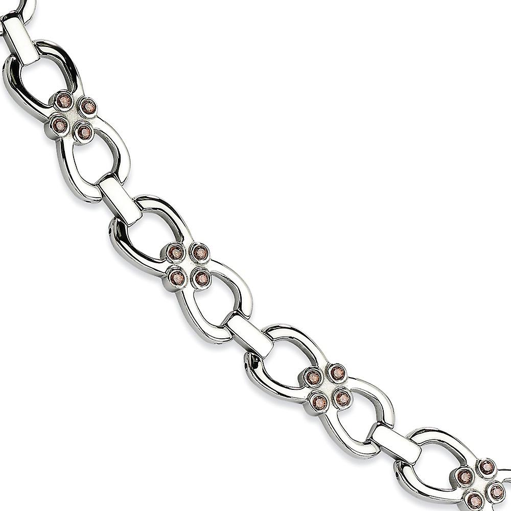 Stainless Steel Fold over Polished With Brown Cubic Zirconias Bracelet 7.75 Inch Link-Bracelet for Women