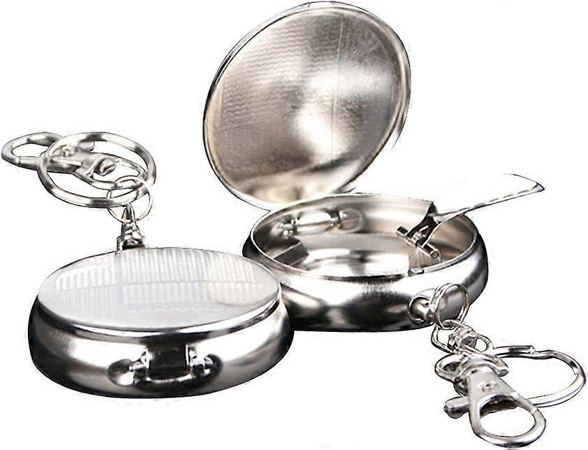 Stainless Steel Mini Circular Pocket Ashtray Keyring (silver 2pcs)