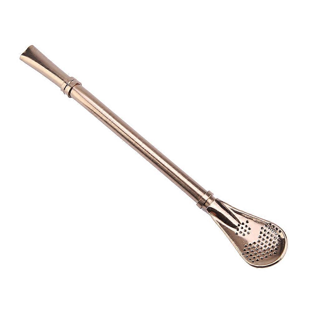 Stainless Steel Metal Drinking Straw Spoon Resuabl Washable Stirring Scoop Rose Gold