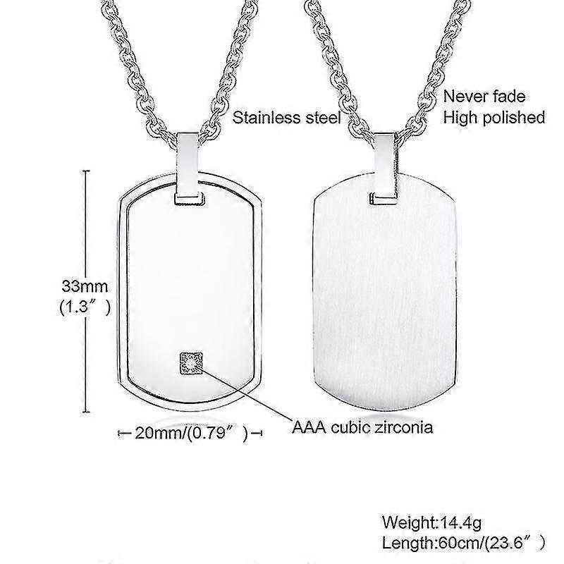 Stainless Steel Men's Dog Tag Necklace With Cubic Zirconia Stone Pendent Men Jewelry