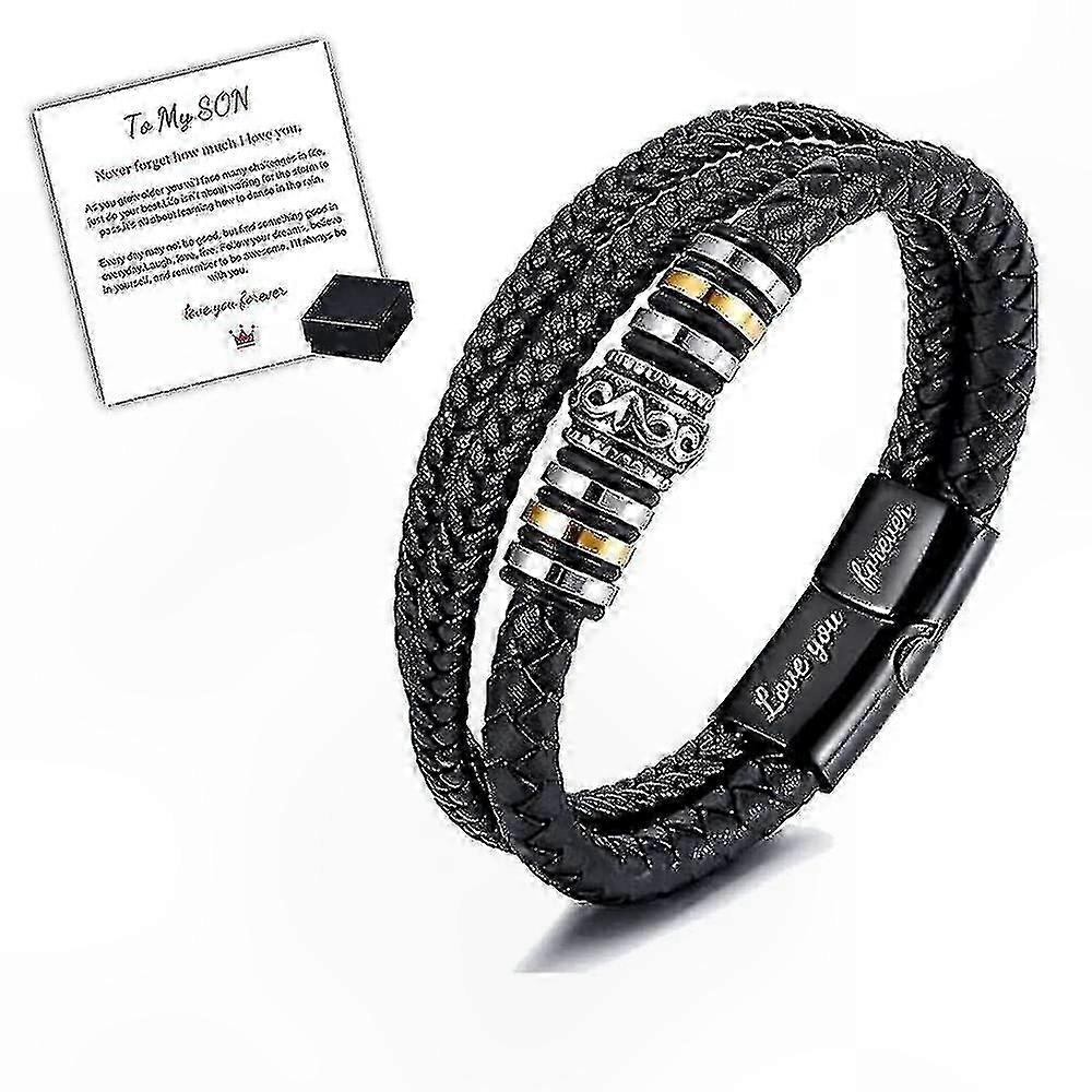 Braided Leather Bracelet with Stainless Steel Wristband - Inspirational Message Gift for Father and Son