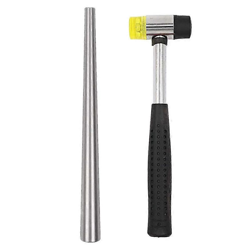 Jewelry Rubber Hammer With Stainless Steel Ring Mandrel Sizer Set Double Face Hammer Jewelers Making Tool(2pcs, Silver)