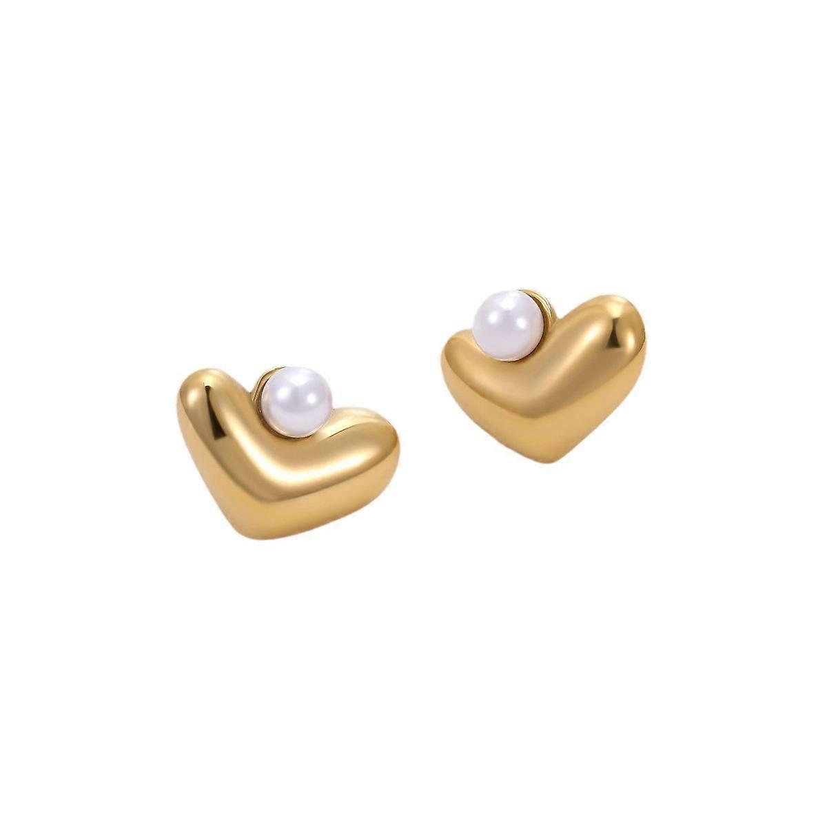 Stainless Steel Geometric Heart Pearl Earrings, 18K Gold Titanium Steel Plated