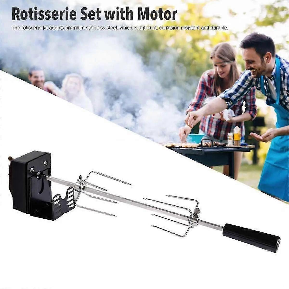 Stainless Steel Automatic BBQ Grill Rotisserie Set with Motor for Cooking Hot Dog Chicken Steak US Plug