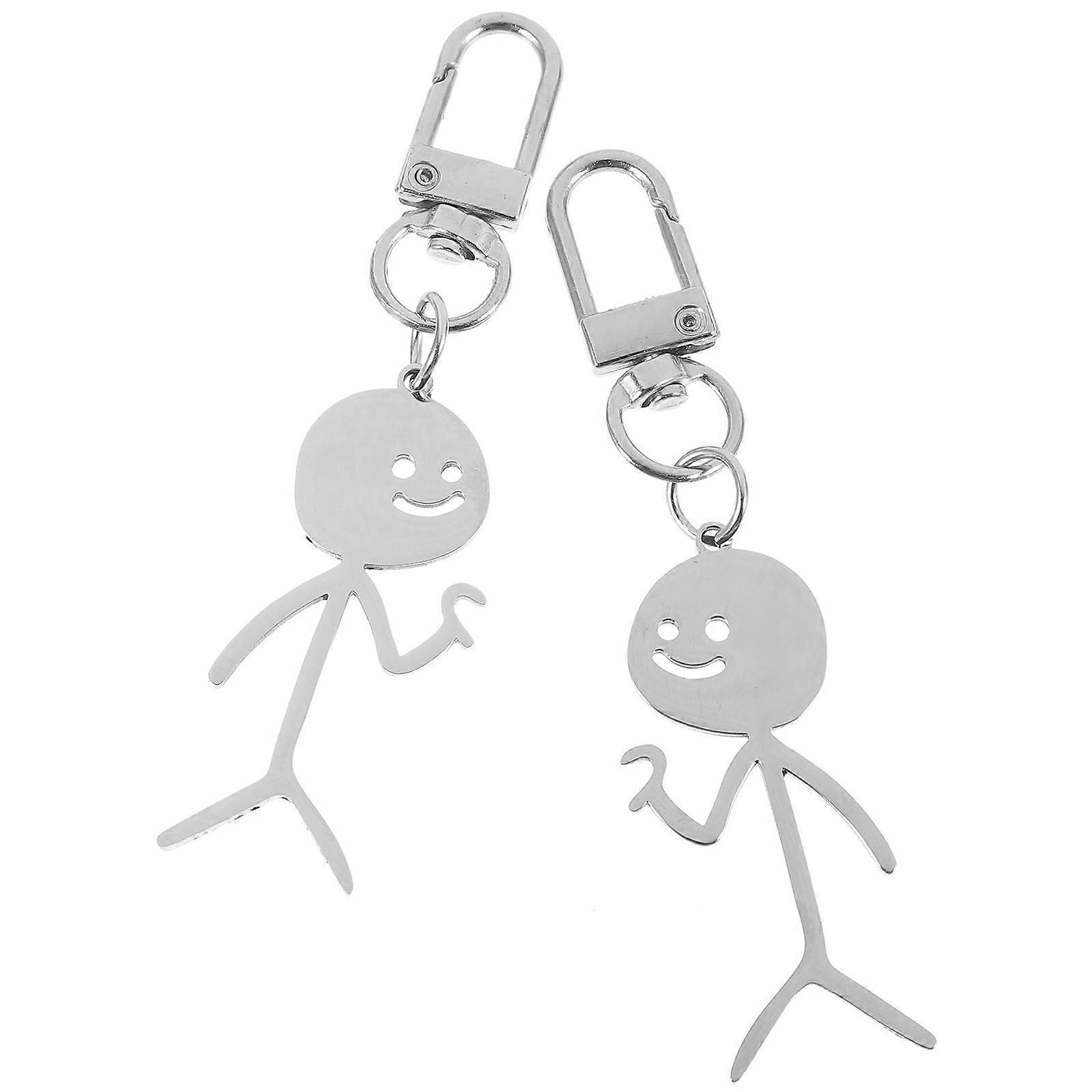 Stainless Steel Doodle Keychain Stickman Pendant for Hanging Keys 4Pcs