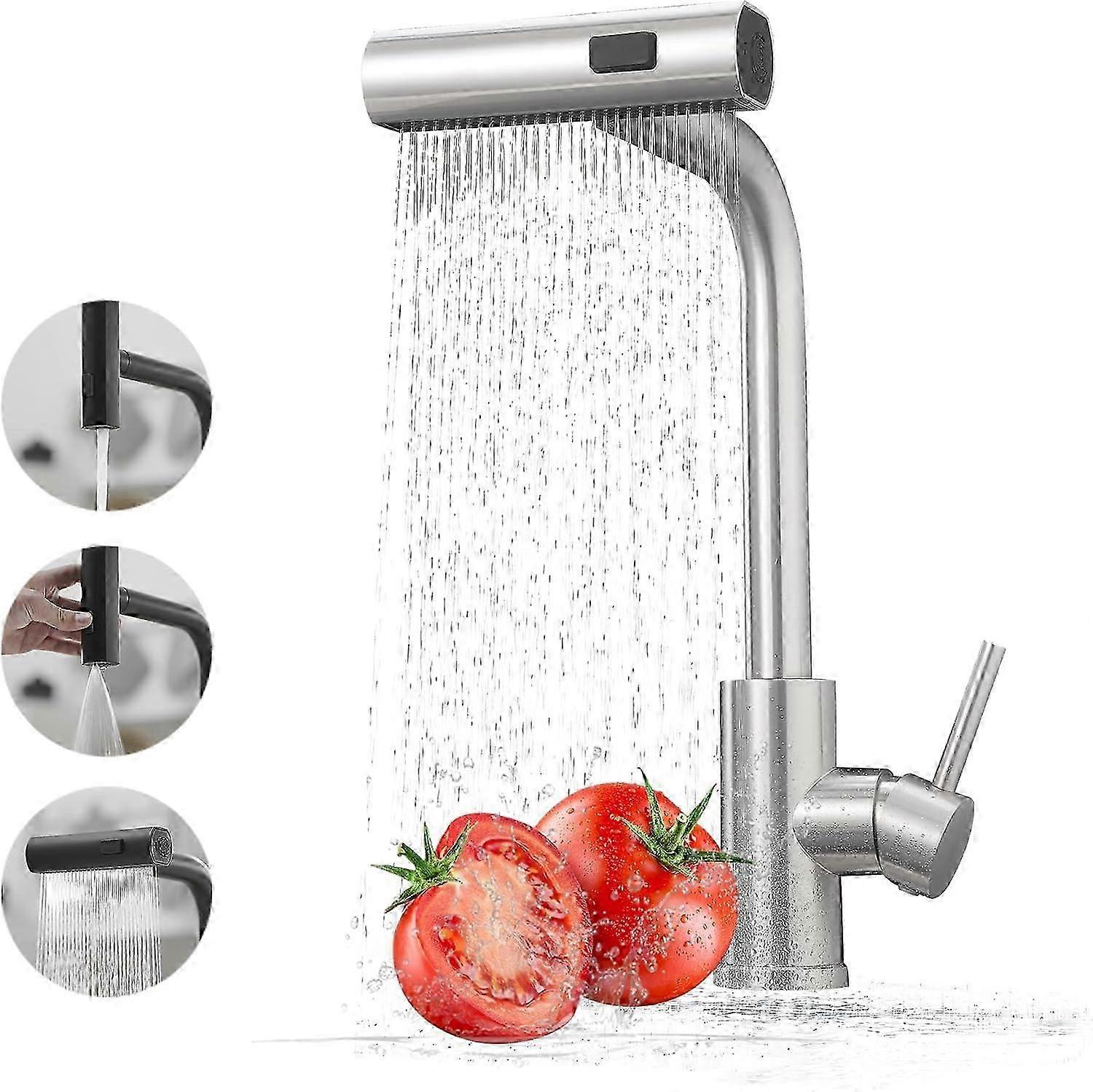 Stainless Steel Kitchen Sink Mixer Tap with Pull Down Sprayer, 3 Function and 360�� Swivel Design