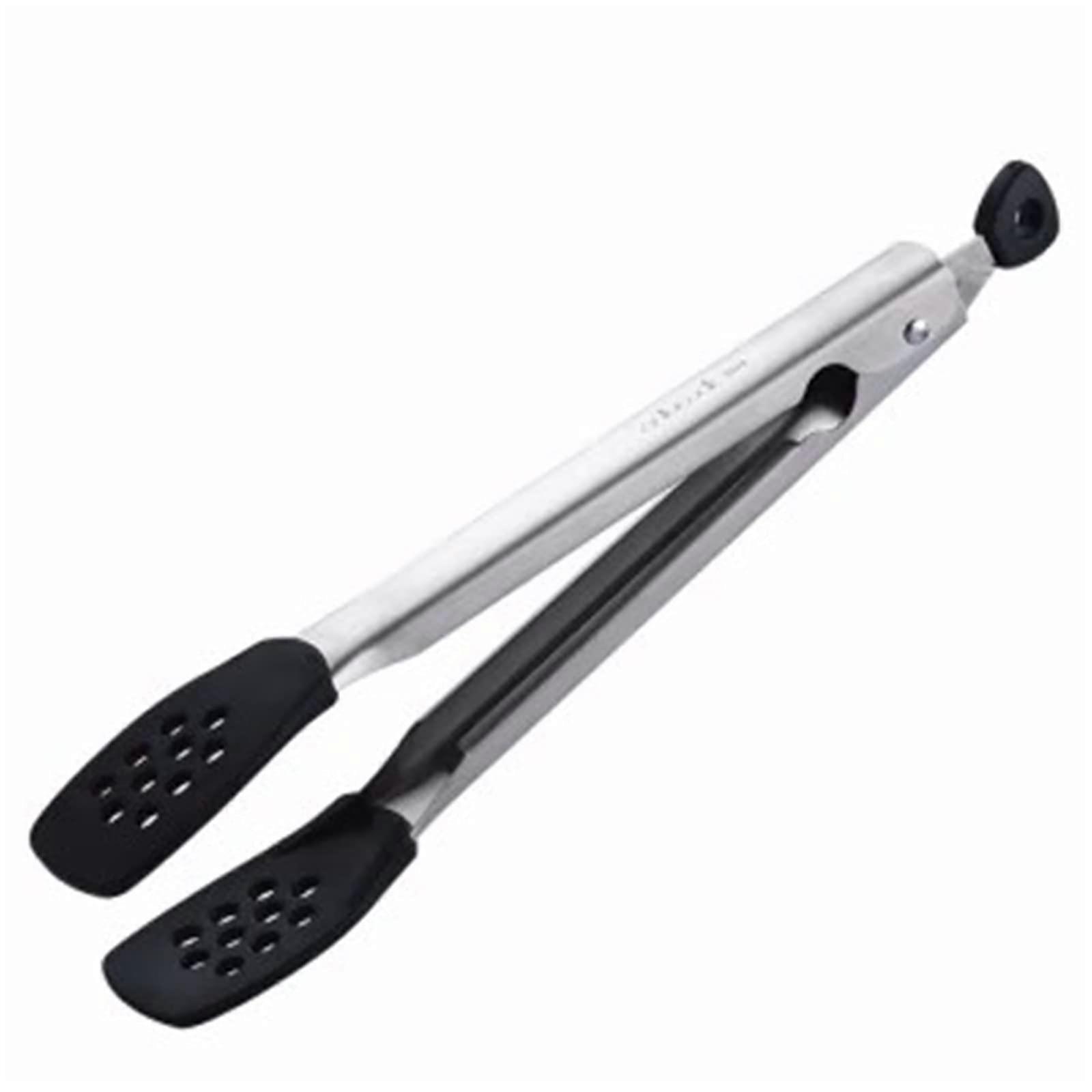 Stainless Steel Kitchen Tongs, High-Temperature Resistant Silicone Food Clip, BBQ Grill Clip, Black Color