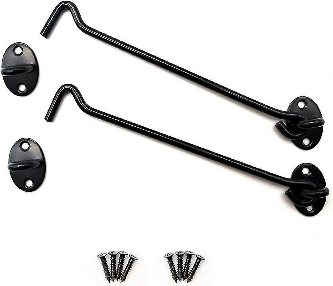 2 Pieces Stainless Steel Storm Hooks Cabin Hooks With Fixing Screws For Barn Door, Bathroom, Window, Sliding Door (200mm, Black)