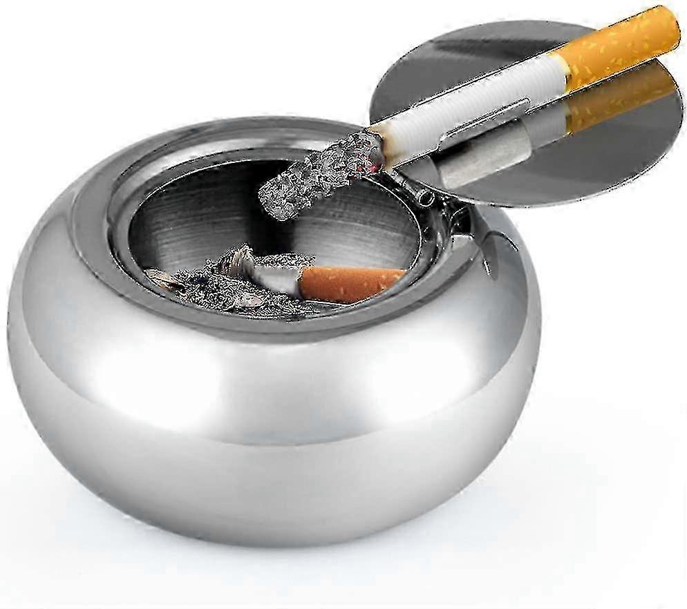 Stainless Steel Drum Ashtray with Lid, Compact Desktop Cigarette Tray 2025