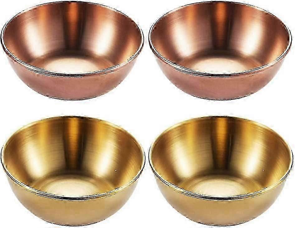 4 Pieces Stainless Steel Round Mini Bowls Household Seasoning Dish (Gold) (4-D-W)
