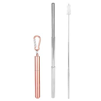 Stainless Steel Telescopic Reusable Straw Portable Drinking Straw with Cleaning Brush for Coffee Milk Tea Travel Pink