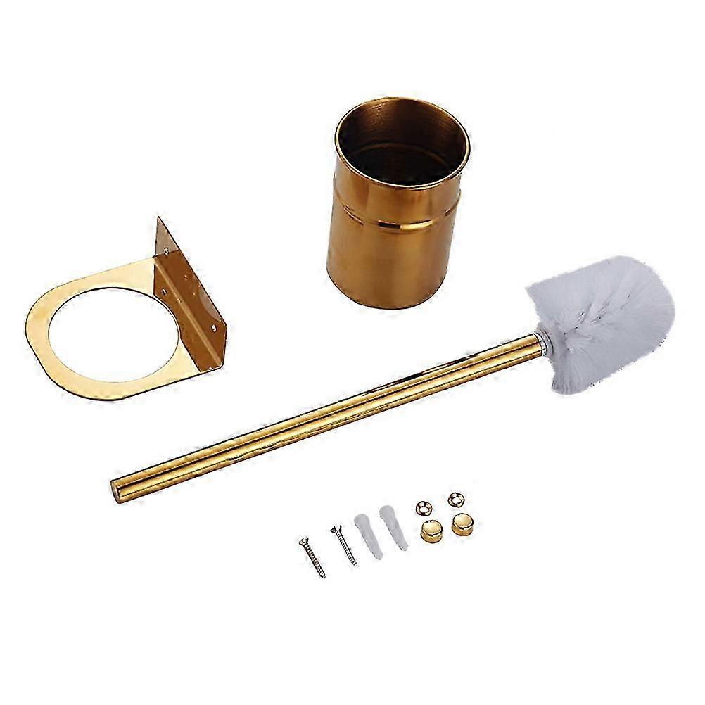 Stainless Steel Wall-Mounted Toilet Brush Holder with Golden Finish for Bathroom Storage