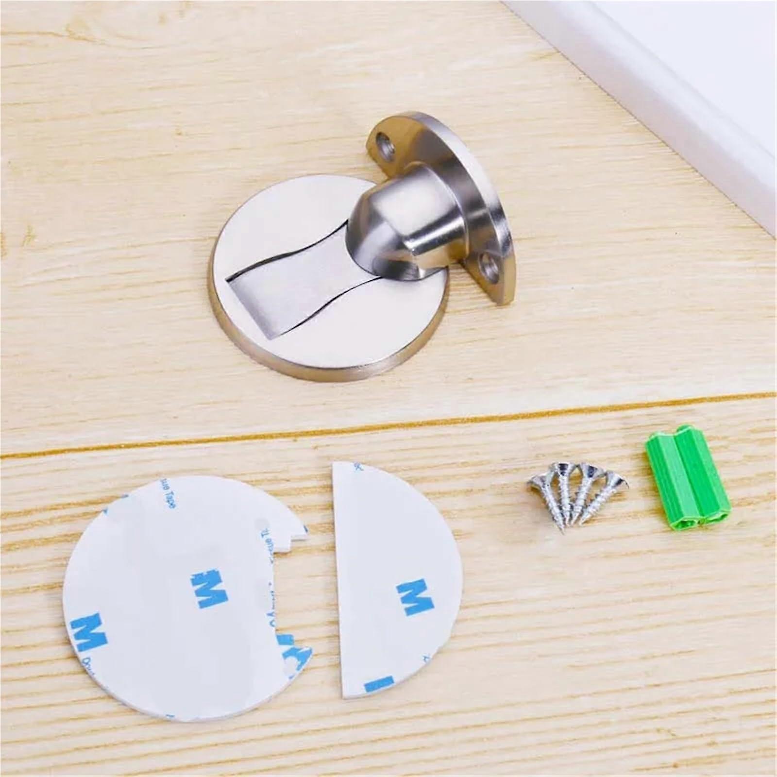 Stainless Steel Magnetic Door Stopper with Adhesive, Zinc Alloy Magnetic Fastener, 1 Piece Bright Silver Finish