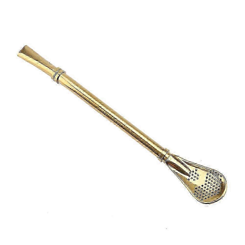 Stainless Steel Metal Drinking Straw Spoon Resuabl Washable Stirring Scoop Gold