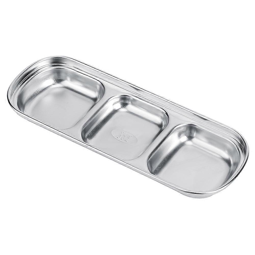 Stainless Steel Three Grid Sauce Dish 21.5x8x2.4cm for Kitchen