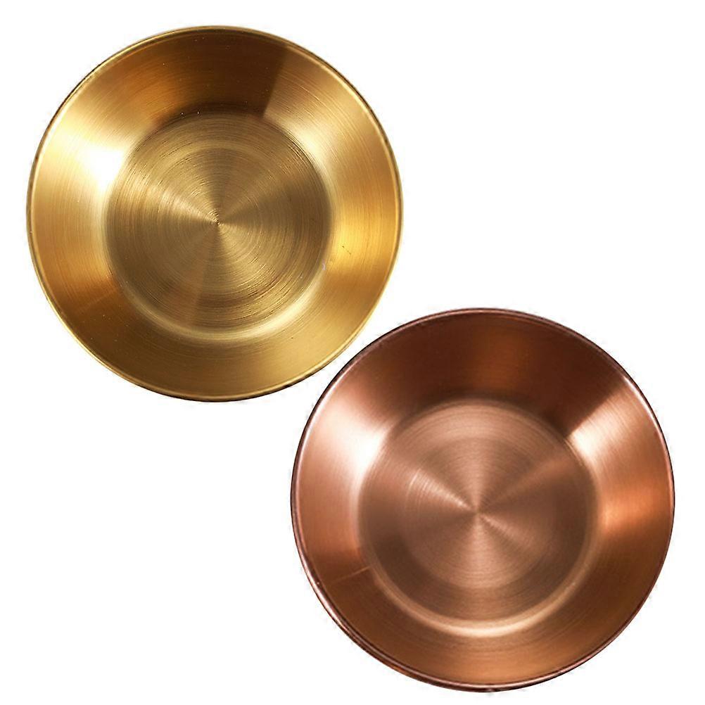 Stainless Steel Seasoning Dish Set 2pcs Small Appetizer Plates for Dipping Sauces, Gold & Rose Gold, for Home, Restaurant, Picnic & Travel Use