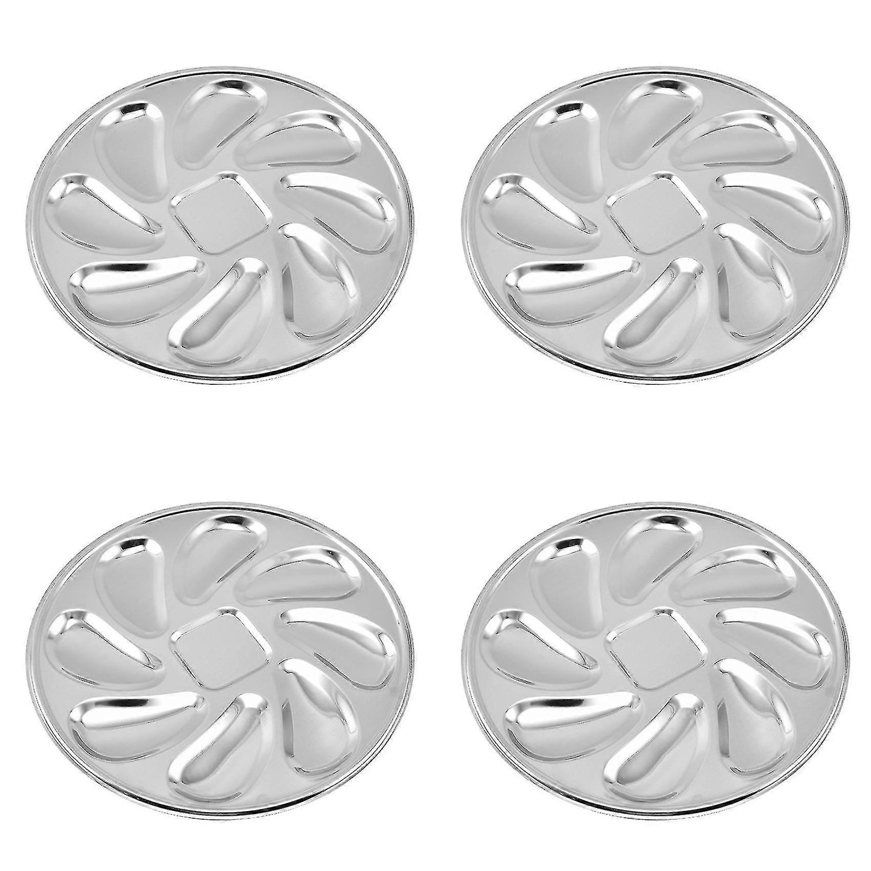 Stainless Steel Oyster Plates, Set of 4, With 8 Grooves, Durable and Easy to Clean