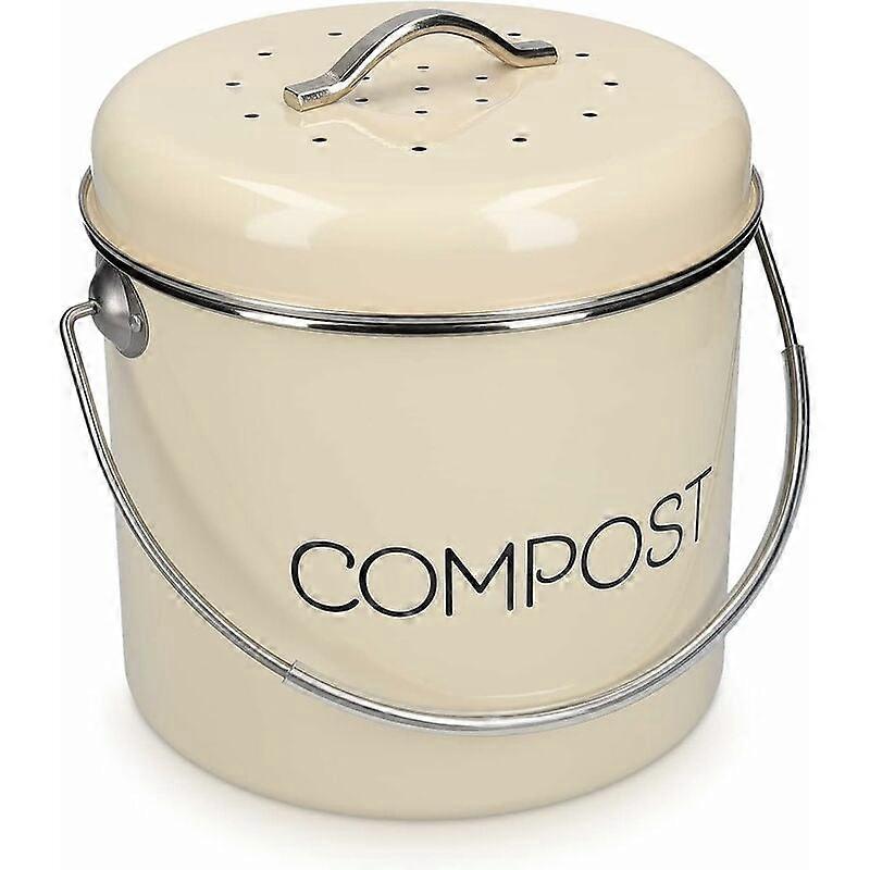 Stainless Steel Composter, Odorless Composting Bin with Replaceable Charcoal Filter for Easy Organic Waste Management, Vintage Design (Creamy White)
