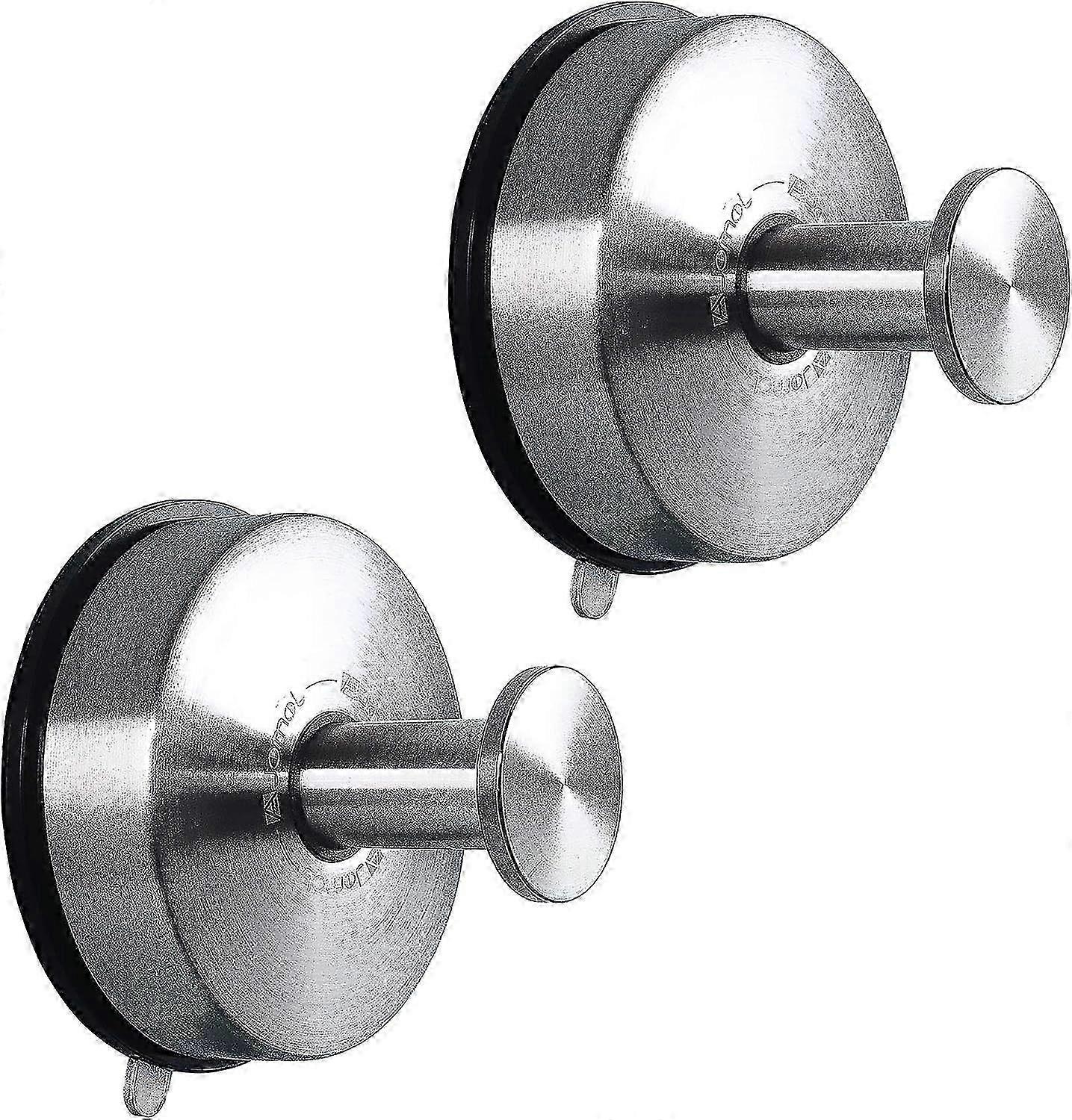 Stainless Steel Suction Cup Hooks - 2 Pack for Kitchen & Bathroom Towels