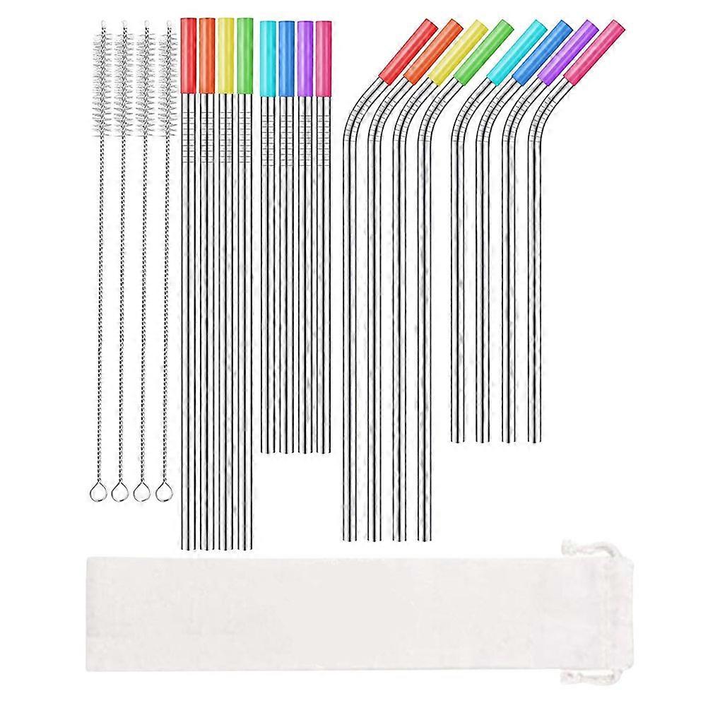 Stainless Steel Straws Set with Sleeve, Cleaning Brush, and Cloth Bag for Reusable Drinking at Parties, Cocktails, and Everyday Use