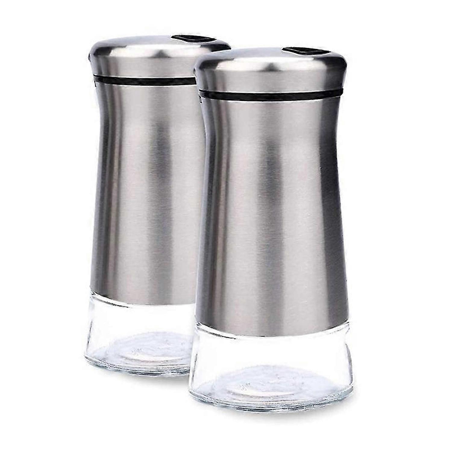 Stainless Steel Salt and Pepper Shakers Set with Glass Base Salt and Pepper Shakers with Adjustable