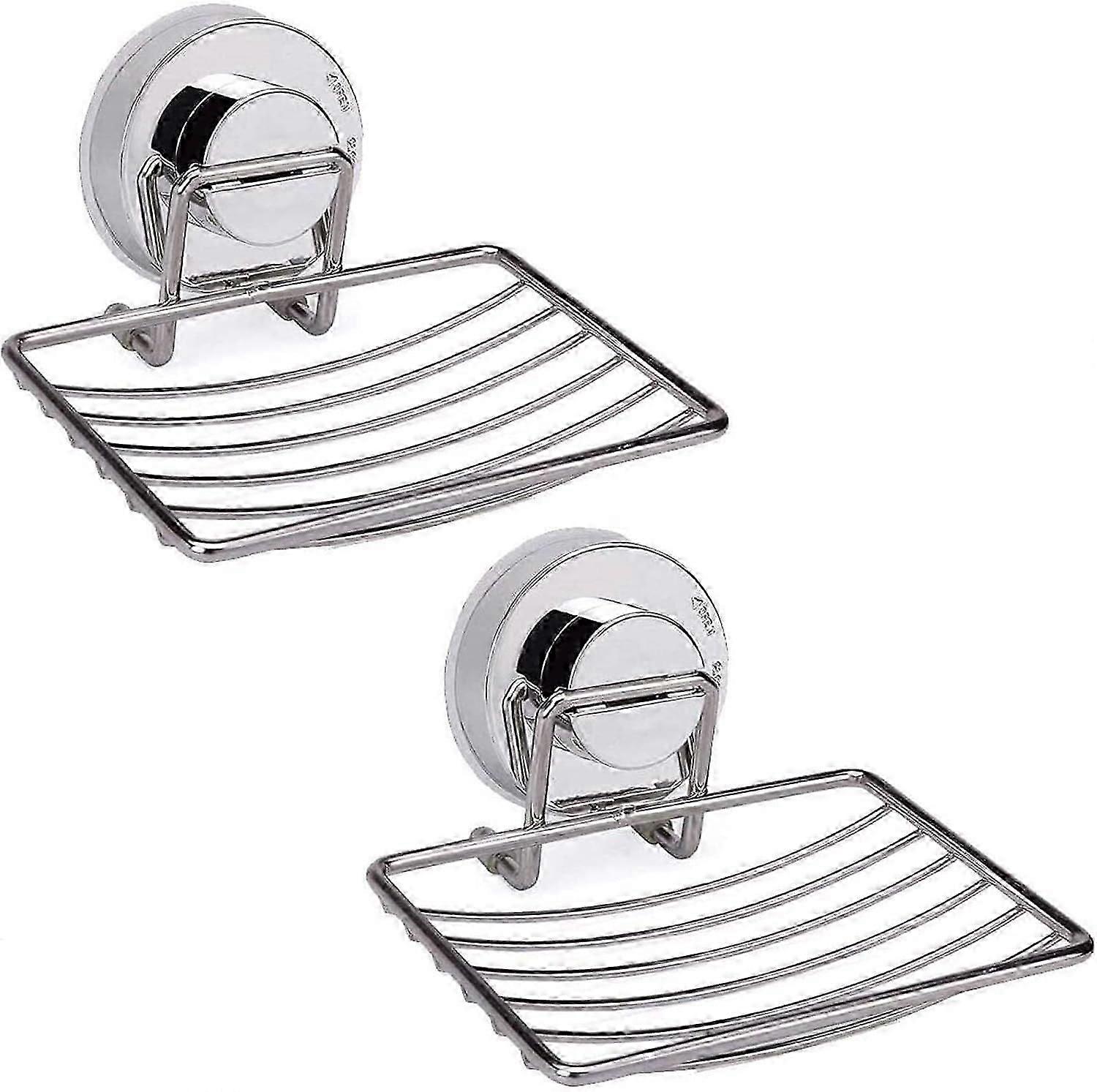Stainless Steel Soap Holder, Bathroom Vacuum Suction Cup Wall Mounted Soap Dish, Bathroom, Tub or kitchen Sink 2 Pack (Silver)