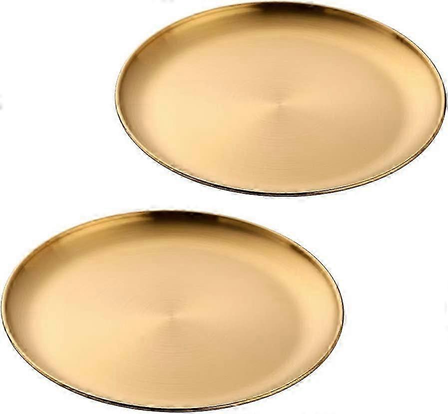 2-piece stainless steel dinner plate set - heavy-duty round metal 9-inch plates suitable for various kitchenware needs | dishwasher safe | f
