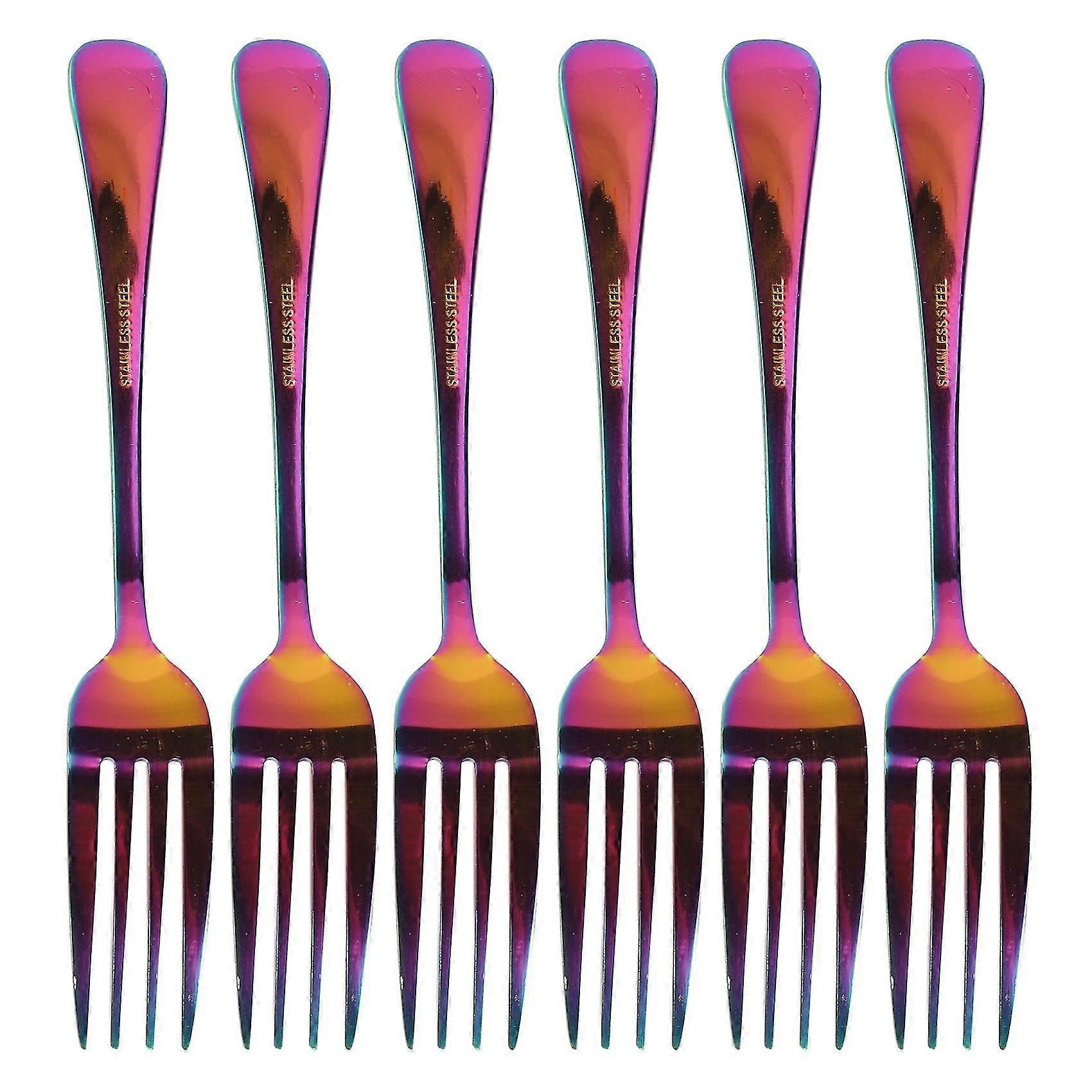 Stainless Steel Table Forks Set, 6pcs Rainbow Color Stainless Steel Tableware Cutlery Dinnerware Se (haoyi)