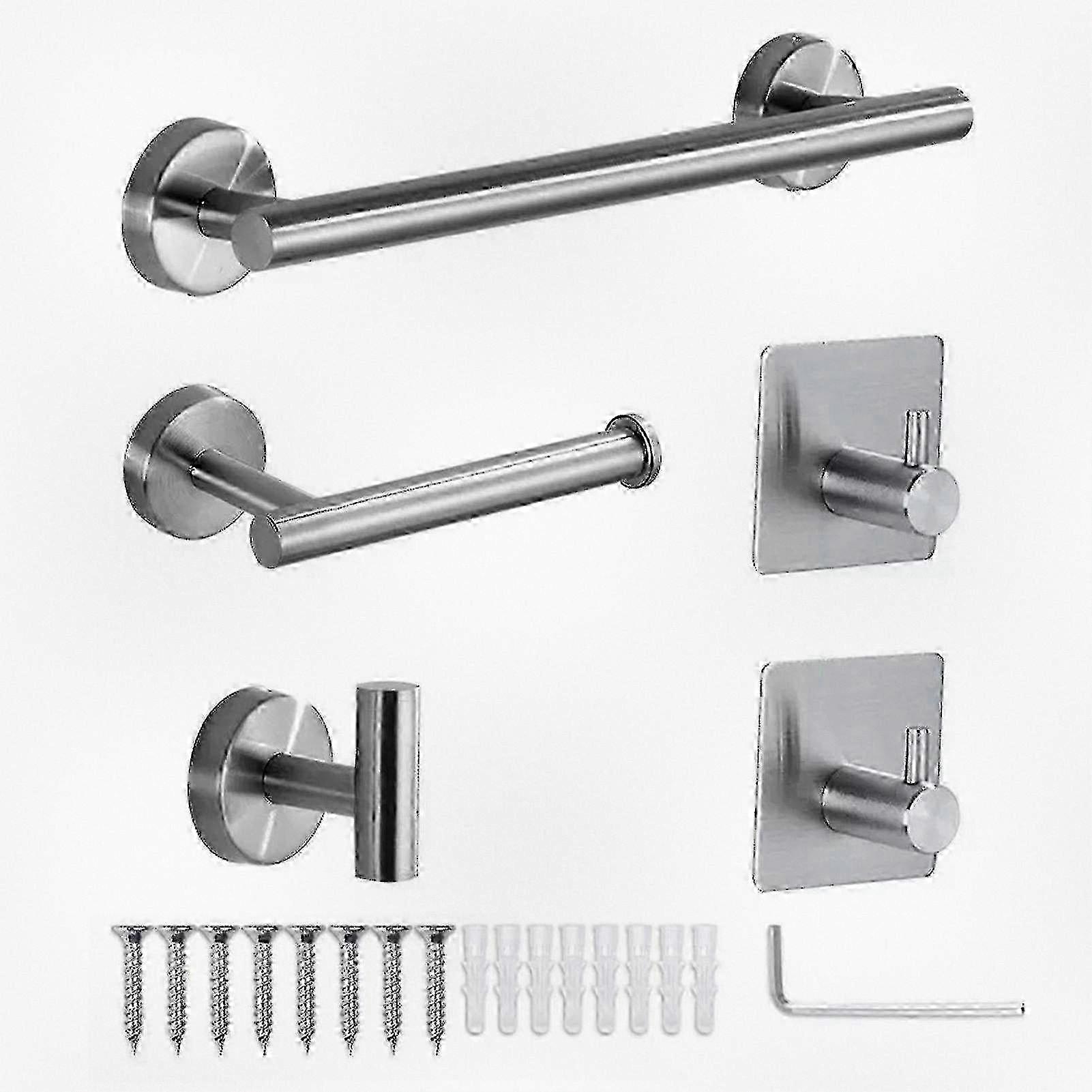Stainless Steel Bathroom Set - Towel Rail, Toilet Paper Holder, Wall Hooks - Modern Silver Finish