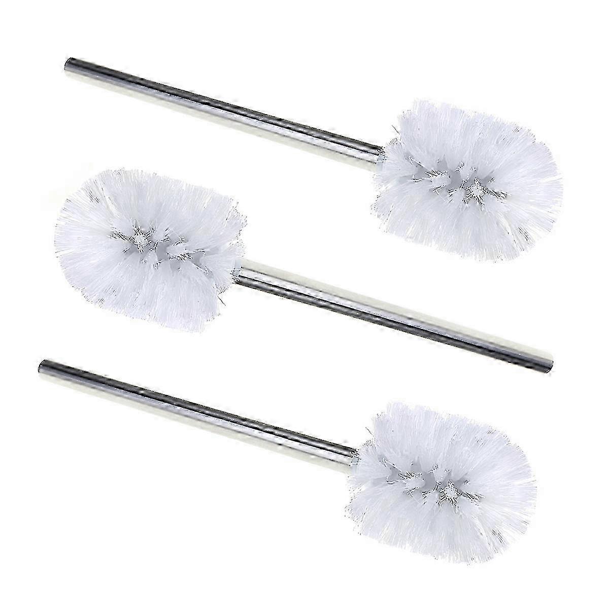 3-Piece Plastic Toilet Brush Set with Stainless Steel Handle - Durable Cleaning Brushes in Stylish White Design