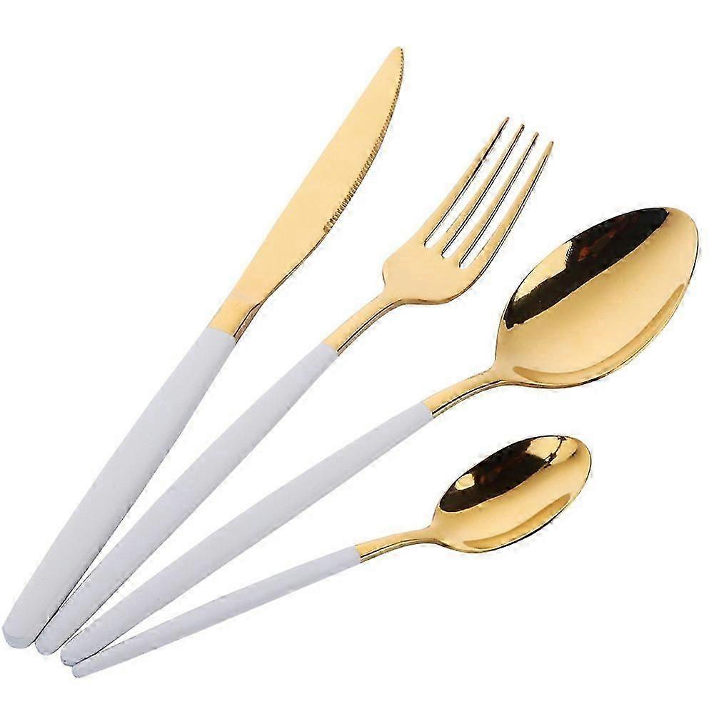 Stainless Steel Flatware Gold Cutlery Set with White Handle Dinnerware Set Kitchen Utensils