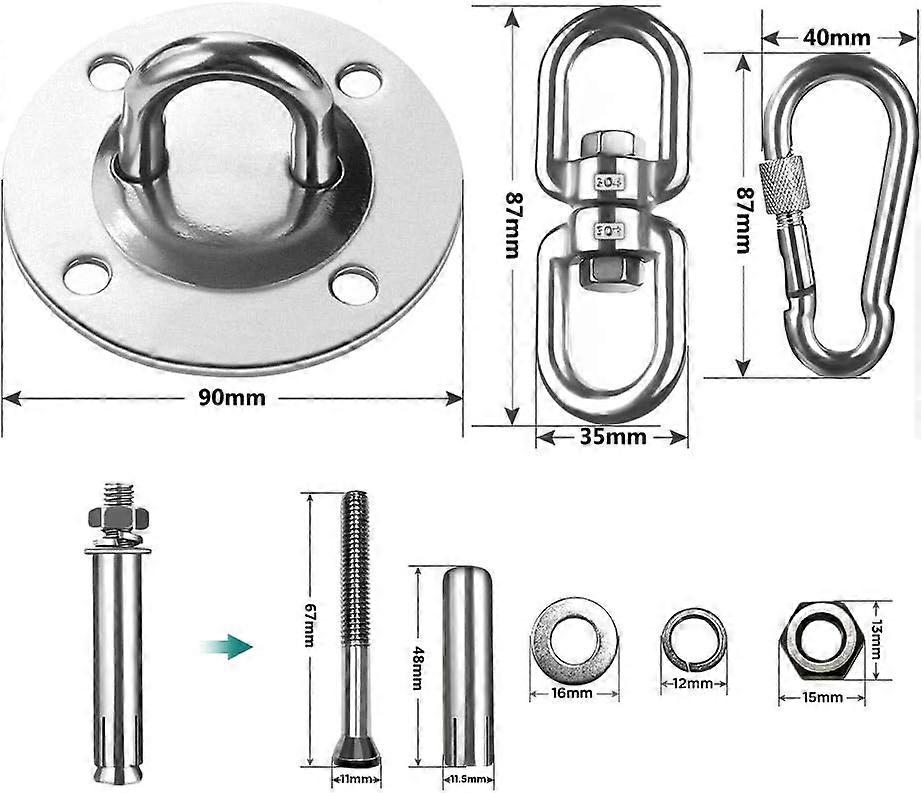Stainless Steel Ceiling Hanger, 7Pcs 360 Rotation with Ball Bearing Up to 500 kg, Perfect for Hanging Hammock Suspended from Wooden Beams and Concrete