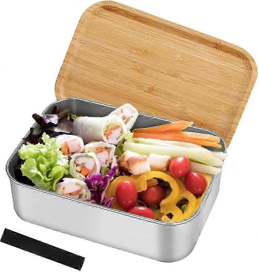 Stainless Steel Lunch Box, 1200 Ml Sustainable Lunch Box Stainless Steel Bamboo, Lunch Box With Cutt