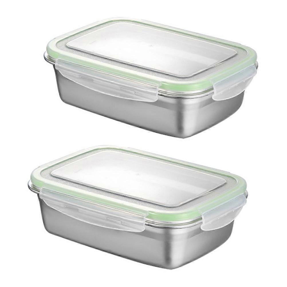Stainless Steel Food Containers Rectangular Lunch Box Portable Sealing Camping 2Pcs