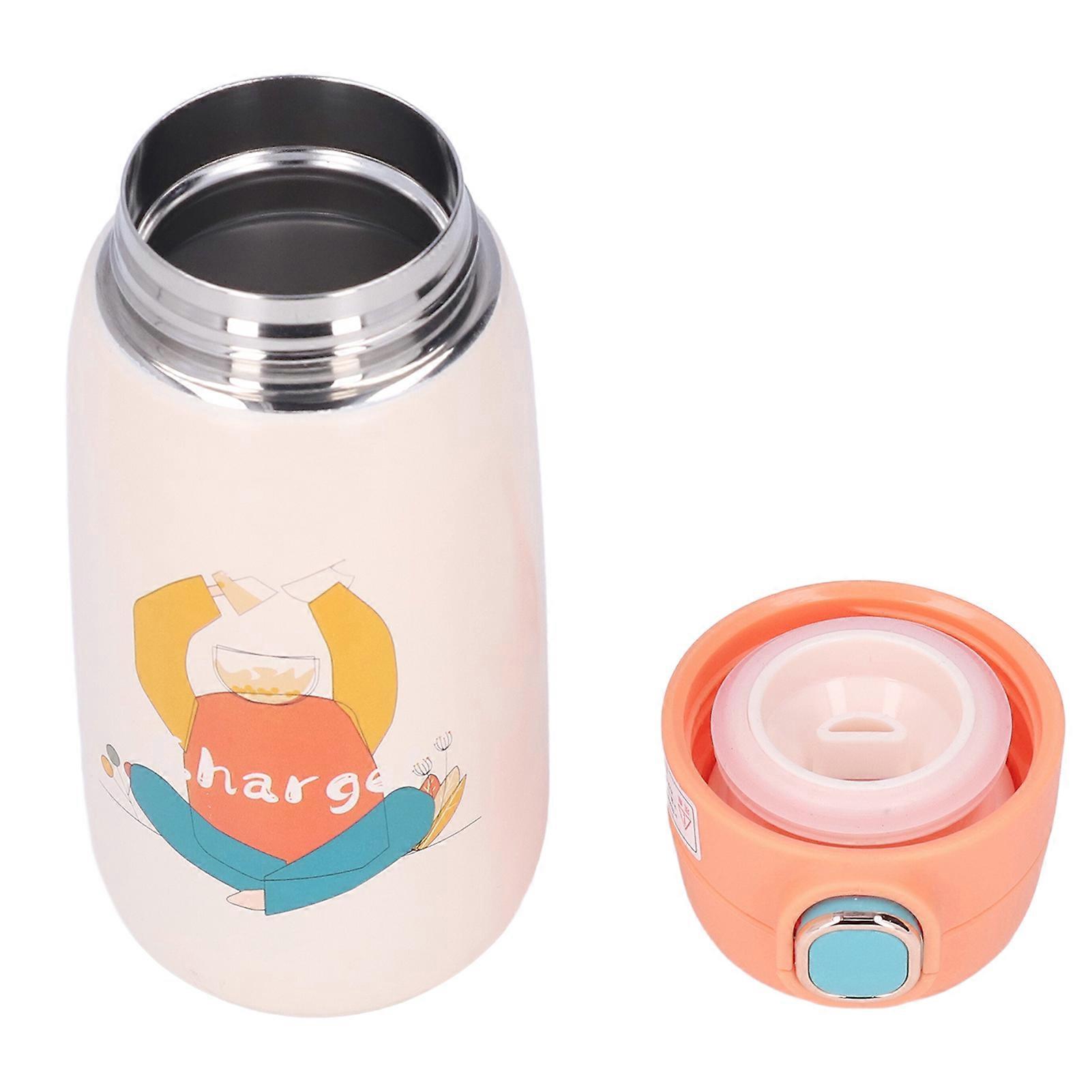 Stainless Steel Water Bottle Children Travel Portable Cute Cartoon Pattern Vacuum Flask Gift 420mlOrange