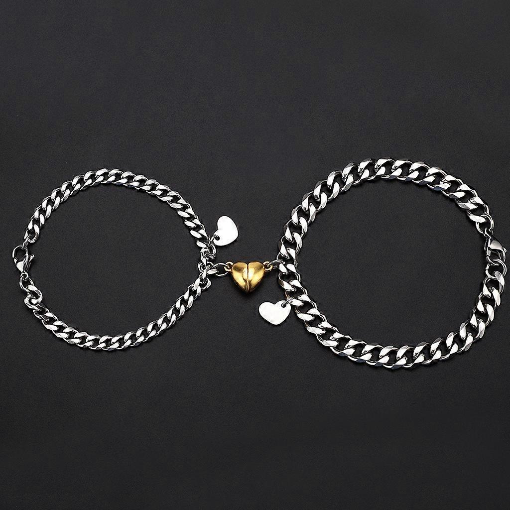 Stainless Steel Couple Bracelet Gold Heart-Shaped Magnet Attracting Bracelet