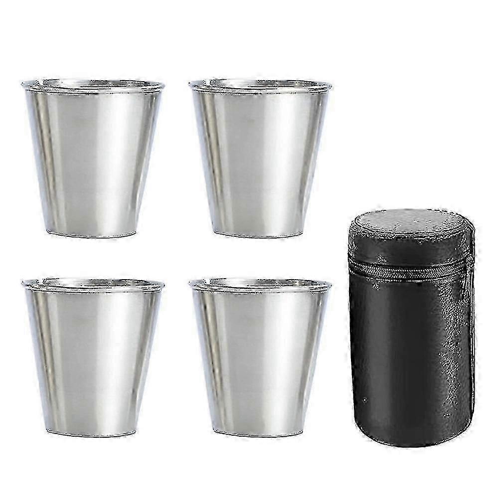 Stainless Steel Shot Cups, 4 Cups, Metal Shot Glasses, Stackable, Hip Flask Small With Leather Bag XXF hwy