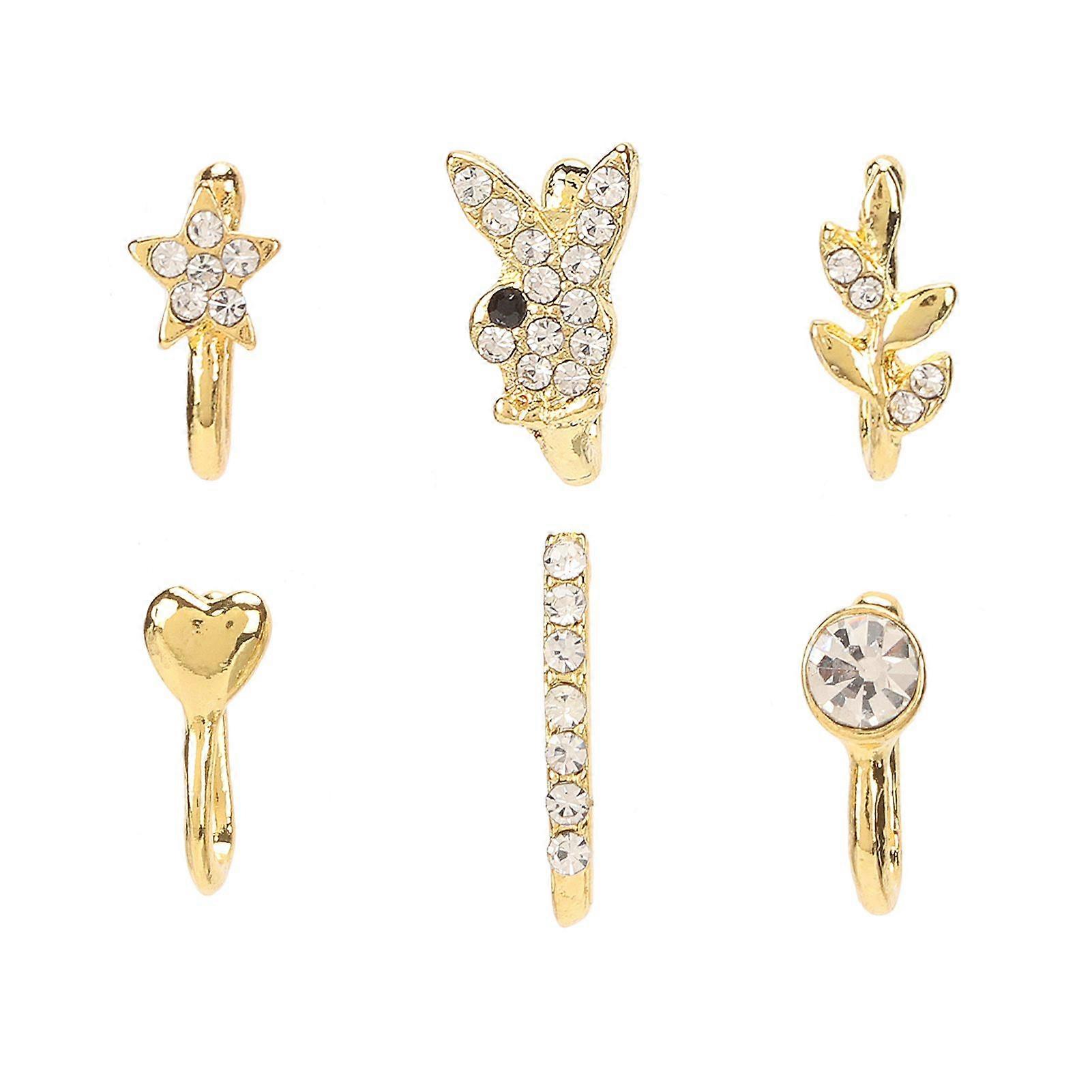 6pcs Fake Nose Ring Hoop Clip On Stainless Steel Hypo Allergenic Painless Size Adjustable Fake Nose Rings Jewelry Gold