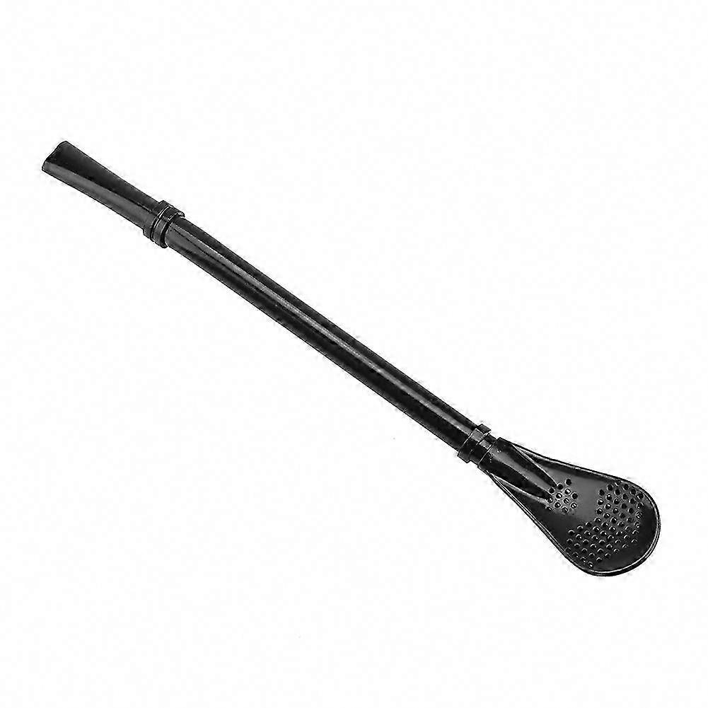 Stainless Steel Reusable Drinking Straw Spoon - Black Washable Stirring Scoop for Drinks