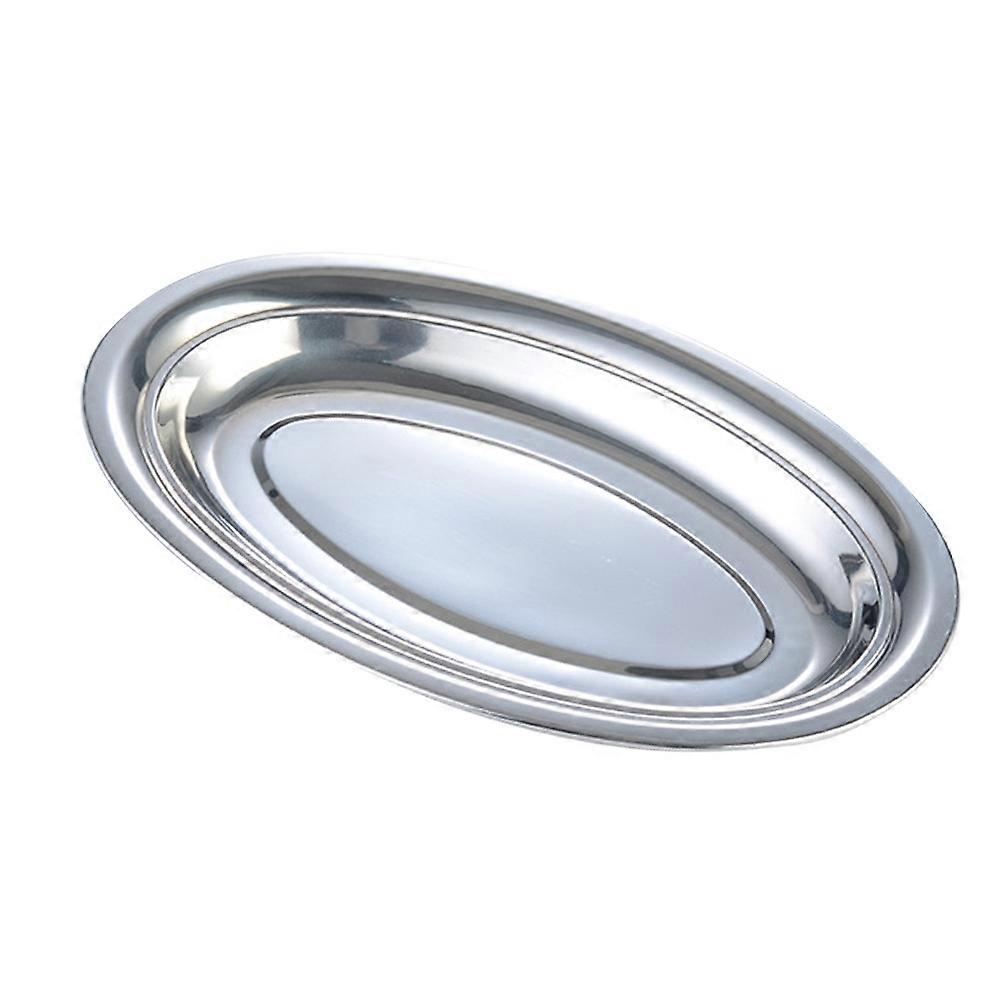 Stainless Steel Oval Plate Deepened Dish Steamed Vermicelli Parties Silver 28*18CM Large Oval Serving Platter 1Pcs