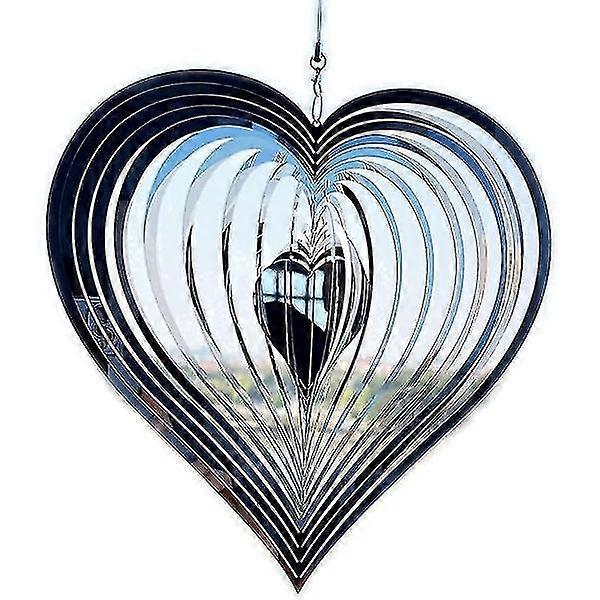 Rotating Heart-Shaped Wind Chime Ornament in Stainless Steel Mirror Finish - Silver - 20cm, Suitable for Various Home Decor Styles